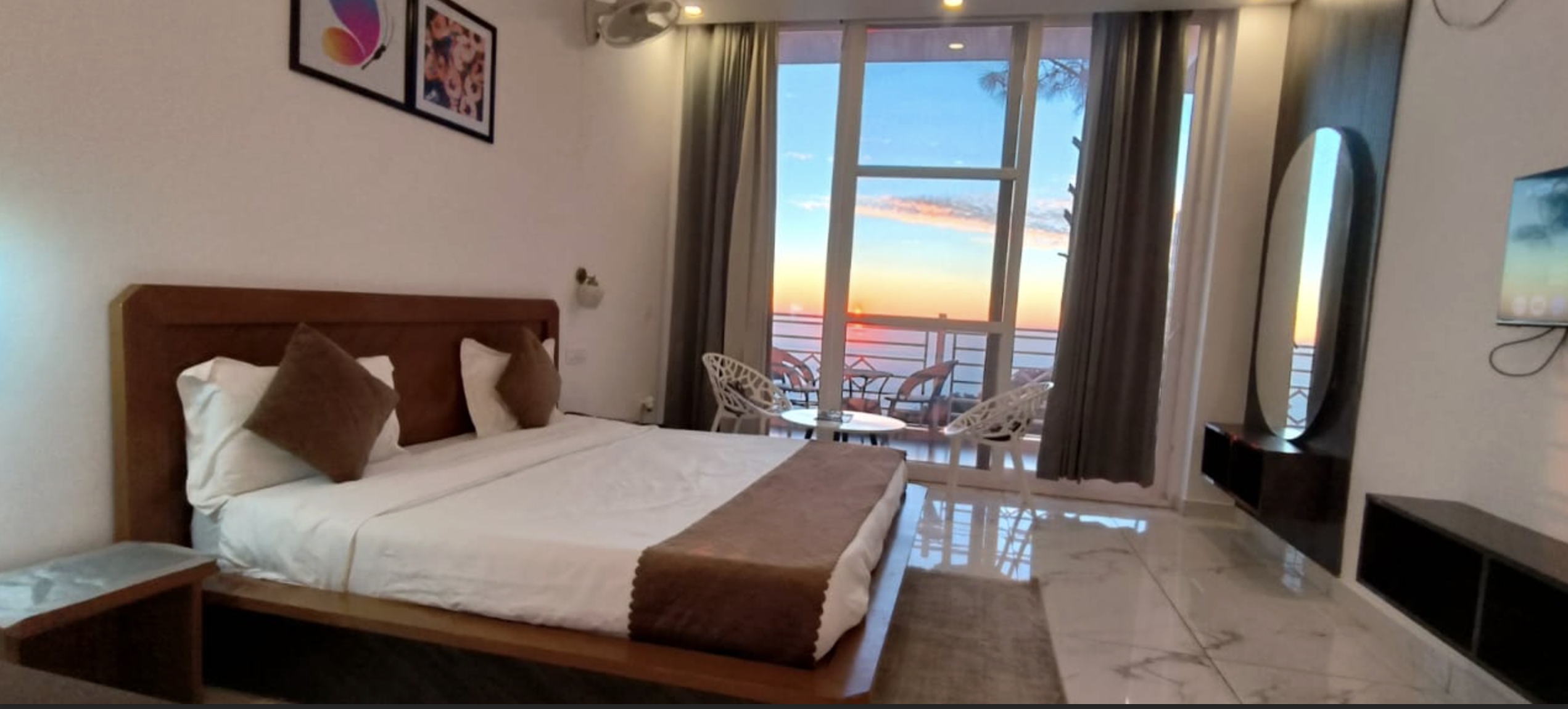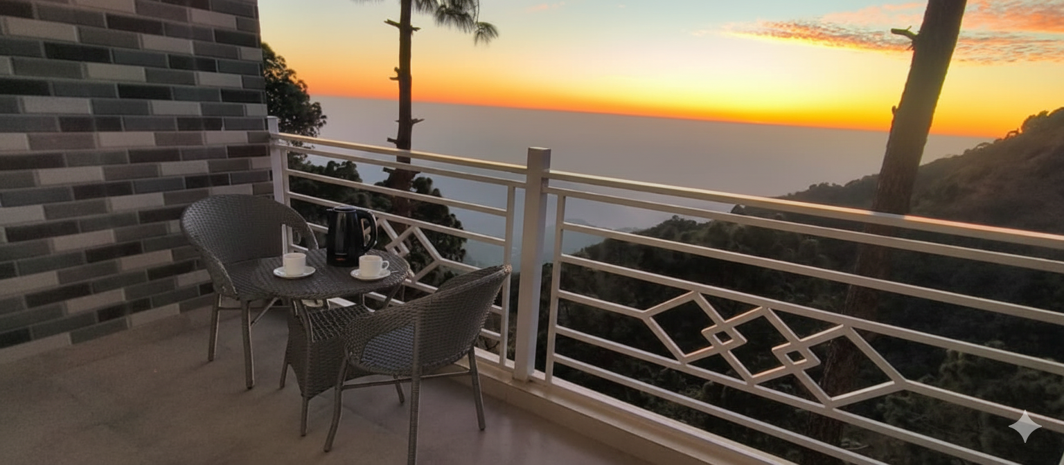 Nestled at 5,900 feet in the misty embrace of Kasauli's ancient pine forests, The Pine Paradise's Deluxe AC Room is an intimate retreat where Himalayan grandeur meets indulgent serenity. Wrapped in the whispers of deodar trees and cooled by mountain breezes, this exquisitely appointed sanctuary features a private room overlooking panoramic valley vistas that stretch endlessly toward the snow-capped peaks. Floor-to-ceiling glass walls blur the boundaries between your cocoon of comfort and the untamed wilderness beyond, while heated floors and plush amenities ensure year-round warmth. Perfectly positioned for sunrise meditations on your private deck and evening soaks under a canopy of stars, this room is designed for couples and discerning travelers seeking romance and rejuvenation. It's more than a mountain escape; it's a symphony of colonial charm and contemporary luxury, where every moment invites you to breathe deeper, slow down, and reconnect with both nature and each other at The Pine Paradise.